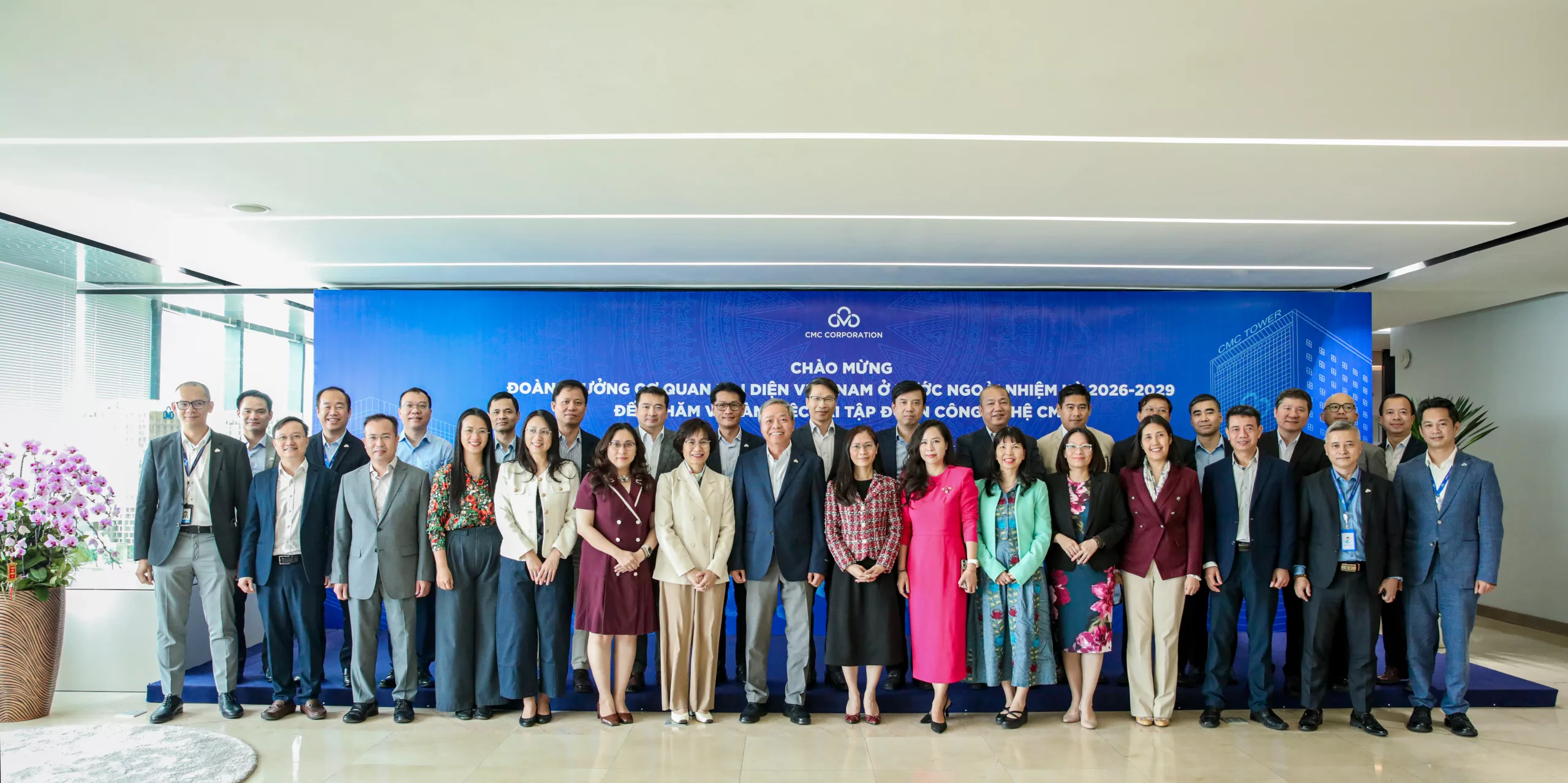 Hanoi, March 13, 2026 – Ms. Luyen Minh Hong, Deputy Director General of the Department of Economic Diplomacy under the Ministry of Foreign Affairs, together with the Heads of Vietnam’s Overseas Missions for the 2026–2029 term, visited and held a working session with CMC Corporation.